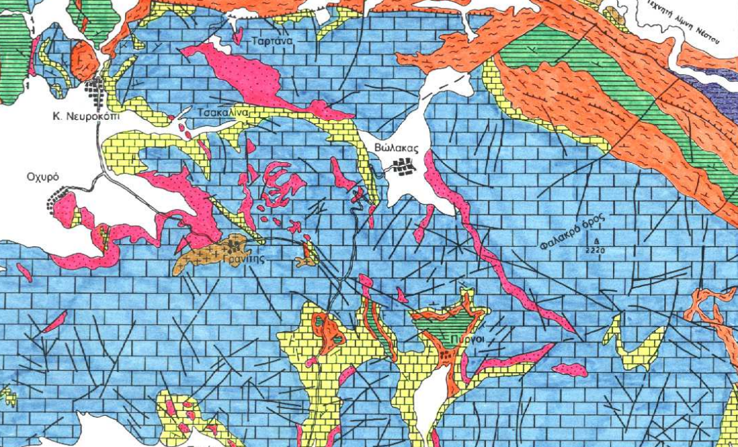 Γεωτεκτονικές ζώνες της Ελλάδος. Μαρμαροφόρες περιοχές και επαρχίες κατά γεωτεκτονική ζώνη. Μάρμαρα Εσωτερικής Μεταμορφικής Ζώνης (ενότητα Παγγαίου με τις μαρμαροφόρες περιοχές Θάσου, Παγγαίου Όρους, Ορέων Λεκάνης, Φαλακρού Όρους, Μενοικίου Όρους και Αγκίστρου, ενότητα Σιδηρόνερου με τις μαρμαροφόρες περιοχές Καρά Ντερέ Δράμας και ημίλευκων μαρμάρων Σκαλωτής Δράμας, επαρχία Δυτικής Ροδοπικής Μάζας και Τριαδικοϊουραστικών νηριτικών κρυσταλλικών ασβεστολίθων). Μάρμαρα Ζώνης Αξιού (τραβερτίνες Αλμωπίας και μάρμαρα Νάουσας κι Έδεσσας). Μάρμαρα Ενδιάμεσης Μεταμορφικής Ζώνης (περιοχές Πεντελικού Όρους και λοιπές εμφανίσεις Αττικής, μάρμαρα Κυκλάδων, Μαγνησίας, Ευβοίας, Λέσβου, Ικαρίας, κλπ). Μάρμαρα Ζώνης Ανατολικής Ελλάδας (περιοχές Αργολίδας και Κορινθίας, Χίου, Φθιώτιδας, κλπ). Μάρμαρα Ζώνης Παρνασσού-Γκιώνας ( μάρμαρα Λειβαδιάς, Αμφίκλειας Φωκίδας, Αράχοβας, κλπ). Μάρμαρα Ζώνης Ωλονού-Πίνδου. Μάρμαρα Ζώνης Γαβρόβου-Τριπόλεως (κοιτάσματα της Τρίπολης, της Ρόδου, κλπ). Μάρμαρα Ιονίου Ζώνης (μάρμαρα Θεσπρωτίας, Ανατολικής Κρήτης, Ιωαννίνων, κλπ). Μάρμαρα Εξωτερικής Μεταμορφικής Ζώνης (του όρους Πάρνωνα, Σαγιά Μάνης και Δυτικής - Κεντρικής Κρήτης). Μάρμαρα Ζώνης Παξών.